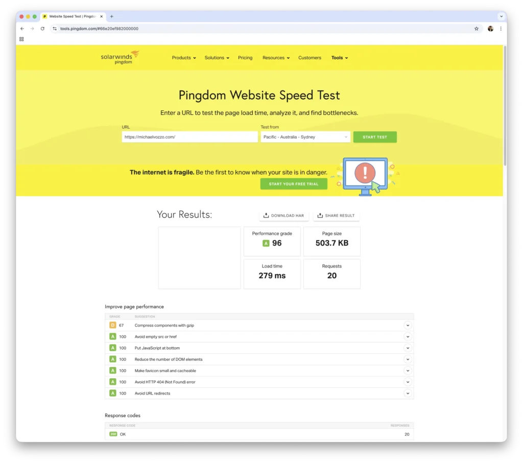 I made the switch to xCloud WordPress hosting, with my newly built custom WordPress FSE theme. You can see the results below: