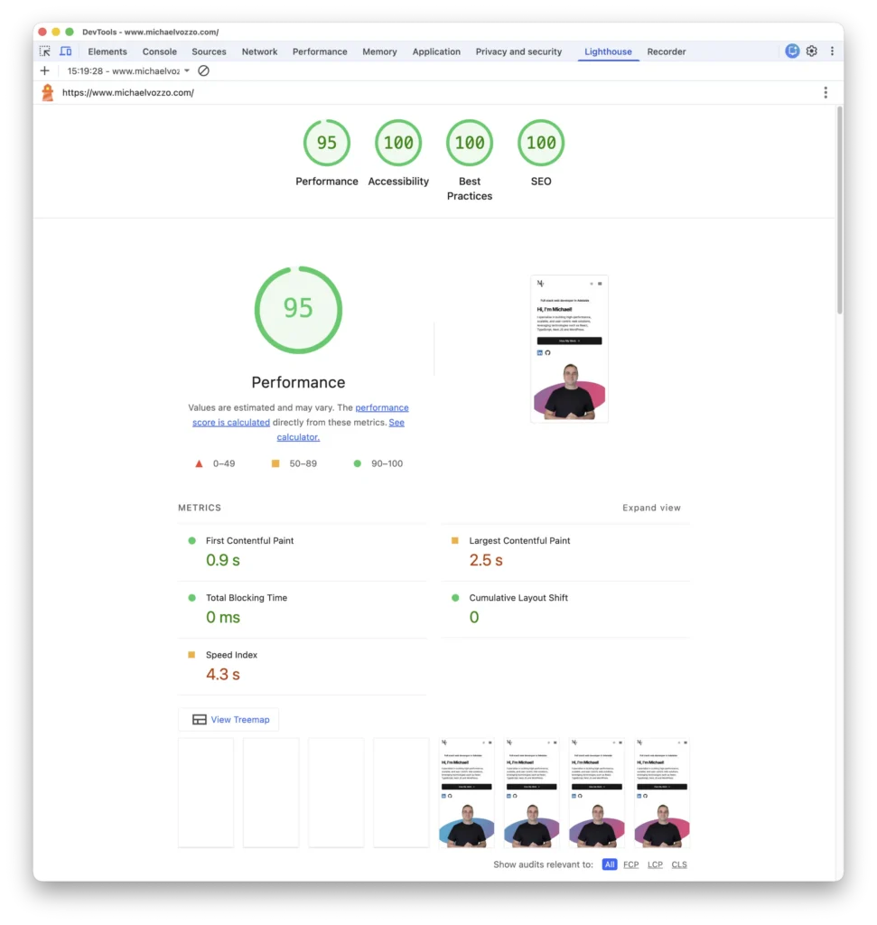 Previously, I was using a combination of DreamHost for affordable WordPress hosting and Vercel for free Next.js hosting. You can see the results of my old site below:
